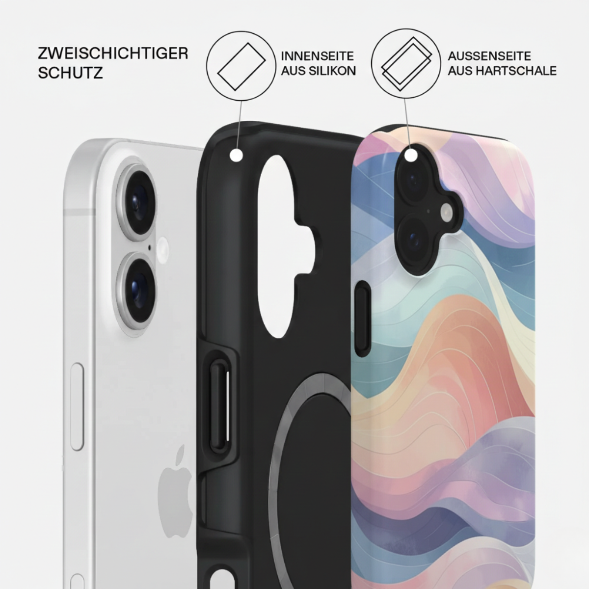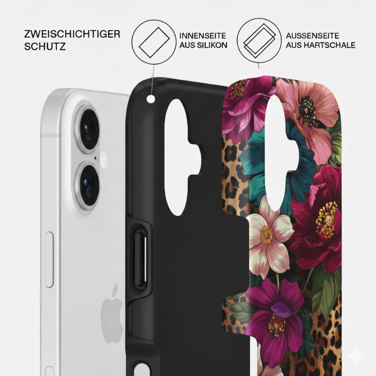 ✅Fashion trifft Funktion • Doppellagiges Design (PC + TPU) für optimalen Stoßschutz im Alltag. • Erhöhter Rand schützt Kamera & Display zuverlässig bei Stürzen.